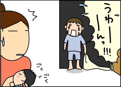 そして、その次男の泣き声で長男が泣く。