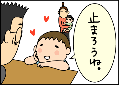 ニコニコと、たくに話す旦那。