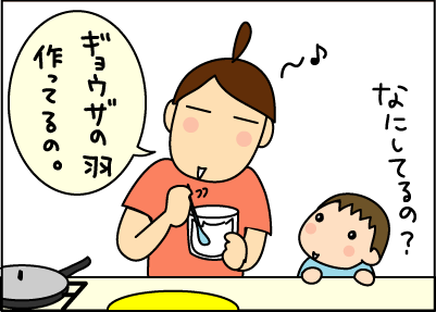 そして、フライパンをお皿ごと手の上でひっくり返す。