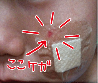 見事にケガの上に接着部分がっ!!