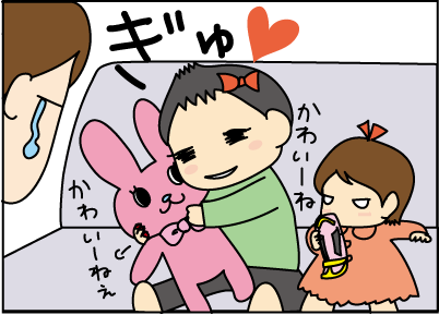 ぬいぐるみを抱いて寝ていました。お花を見て「きれーねー」と喜んでいました。