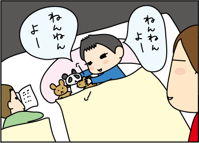 ぽんぽんと寝かしつけながら