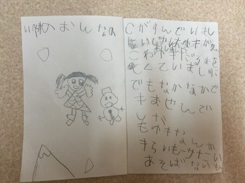 こは(おんなのこは?)ゆきだるまをつくっていました