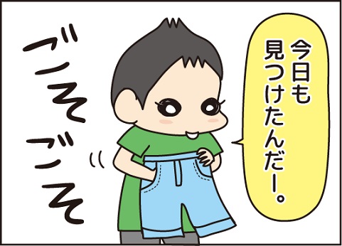 小1息子のポケットにも石や木の枝や葉っぱや砂やドングリや...いろいろ入ってます。