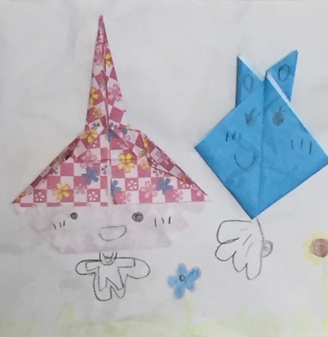 ももが折り紙の裏に書いてあった