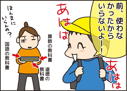 弟は自分ルールで「今日は教科書いらん」と置いていきます。