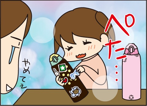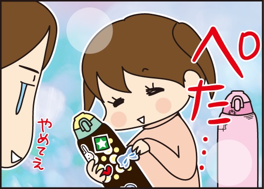 けえこさんとしたら、せっかくのおニューの水筒が光速の早さで中古の水筒になるというイリュージョンを見せられた訳ですね(((*≧艸≦)ププッ