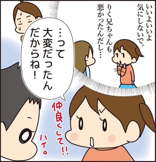 りく君は なんでも許してくれそうだから、お友達はイタズラしたのかなぁ??でも叩いたりはダメだね。やり返すのが良いとは言えないけど、やられっぱなしじゃなく りく君の意思を示す事ができるのは 大事で、大丈夫だなぁと オバちゃん安心しました😊