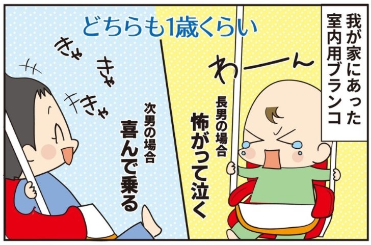 おなじ遊具でも、こんなに違う!三兄妹の室内ブランコ遊び【ほわわん娘絵日記 第49話】