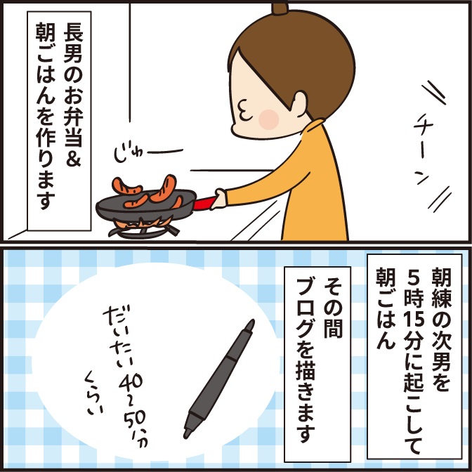 6時に起きて弁当&朝食作り、全員をたたき起こす、食べさせる、準備するってルーティンで朝は回りますが、