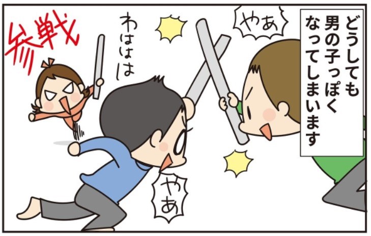 兄二人がチャンバラをしていたら自分も武器をもって参戦するようになってしまいました。