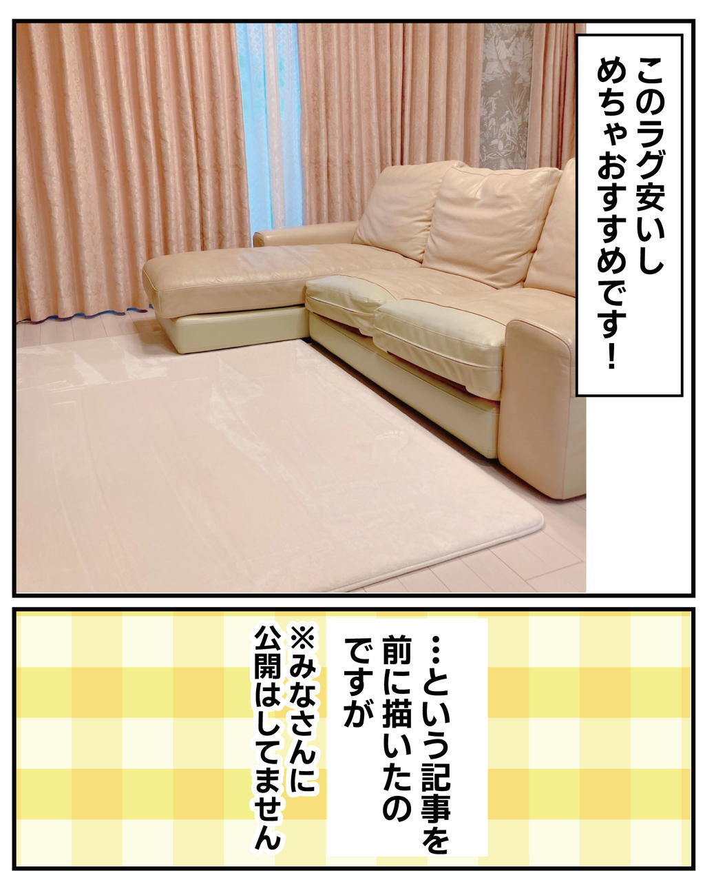 ラグは実家でも年中当たり前にひいていて、ワタシも結婚して当たり前にひいていたんです。