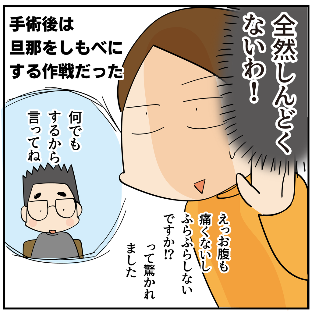 旦那様、しっかり見抜いているけど、やっぱり術後の身体は労らないといけないのをしっかり理解していらっしゃるのはさすがですね(◍•ᴗ•◍)