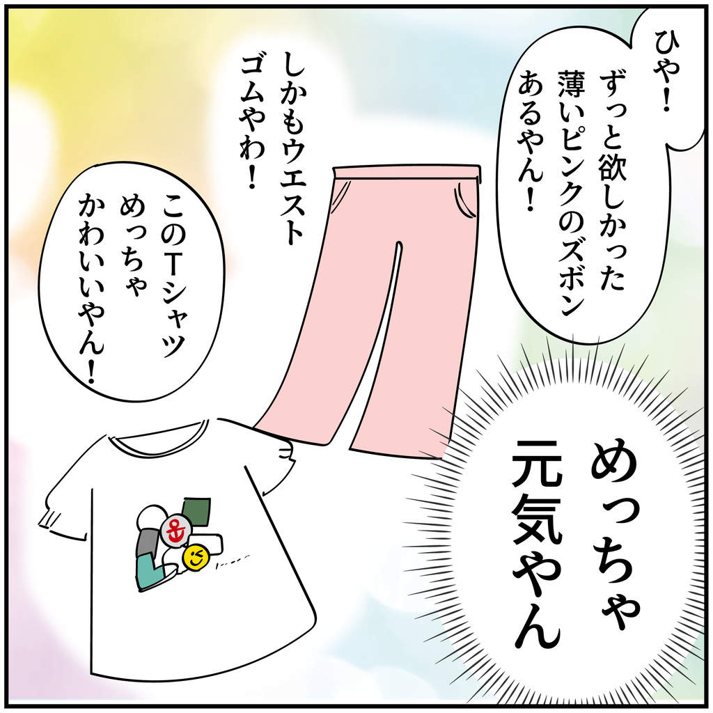 最後のコマで、さっそく買ったTシャツとピンクのズボンを着ていて可愛いです!