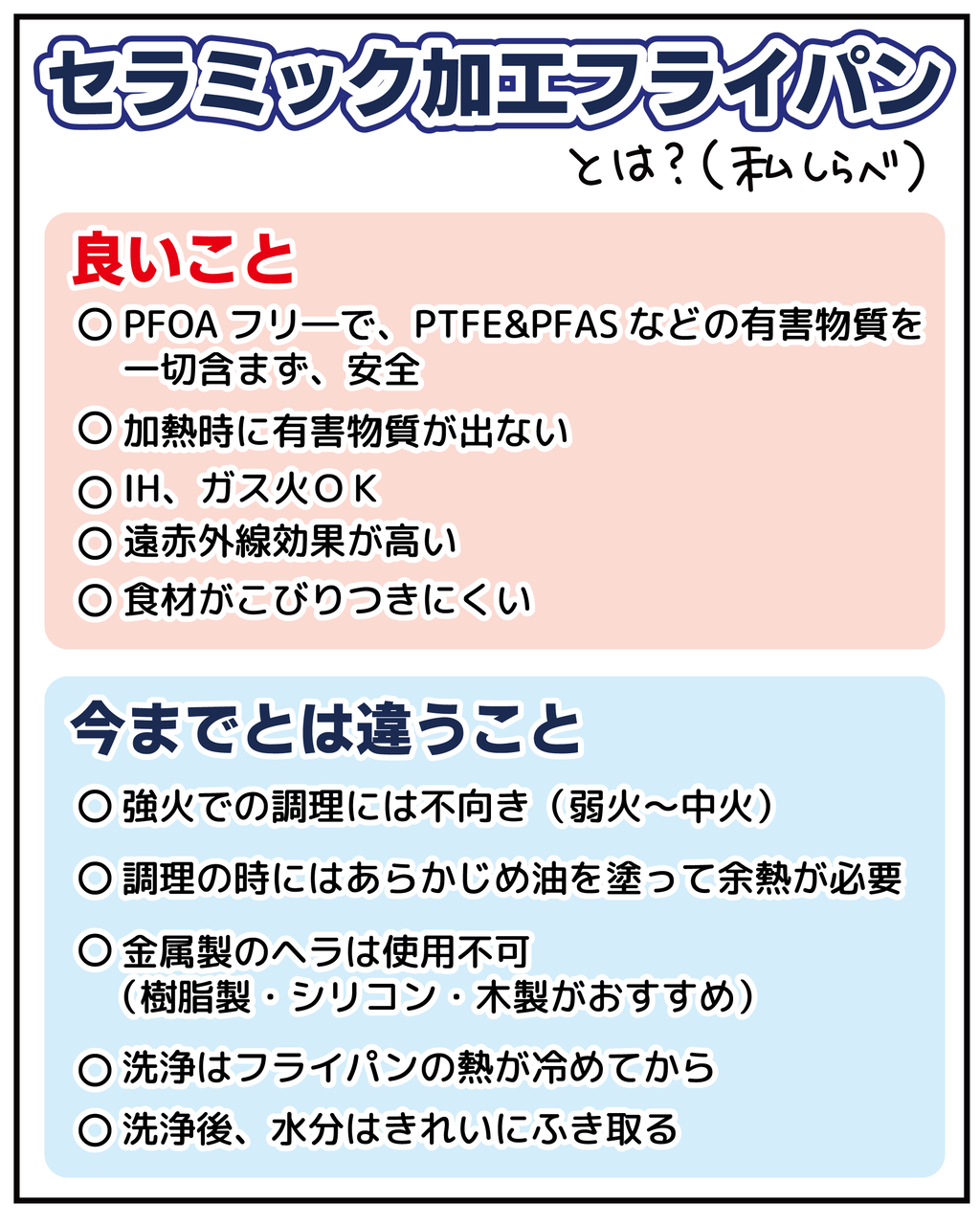 もし、今後テフロン加工の物を使われる際にはセラミックと同じ扱い方をされるといいかもしれませんね。