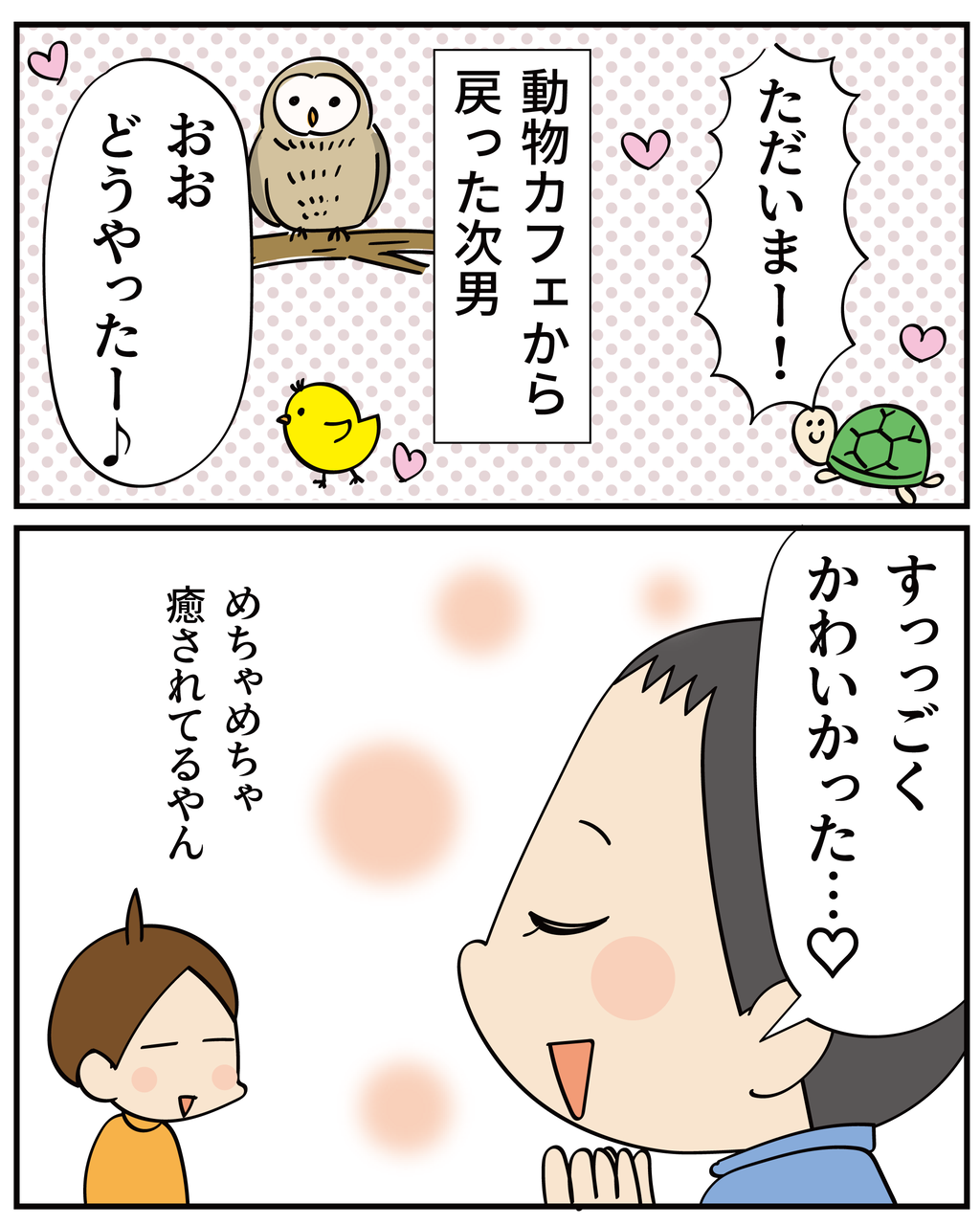 では、次男りくが動物カフェから帰ってきた続きです~!