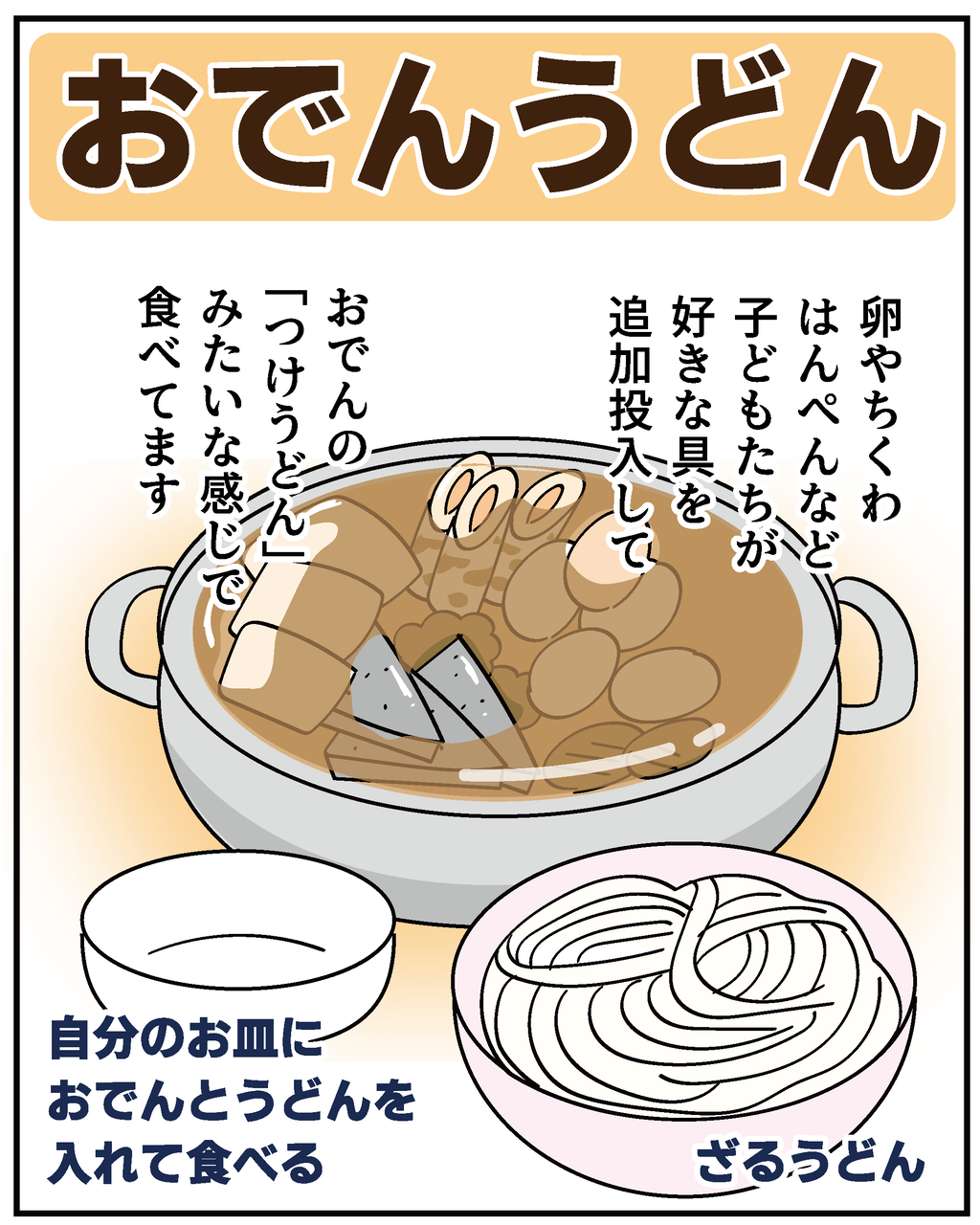 でも私が大人になるまでおでんはおでんで食べてたので、うどんと組み合わせるのは考えもしませんでした。