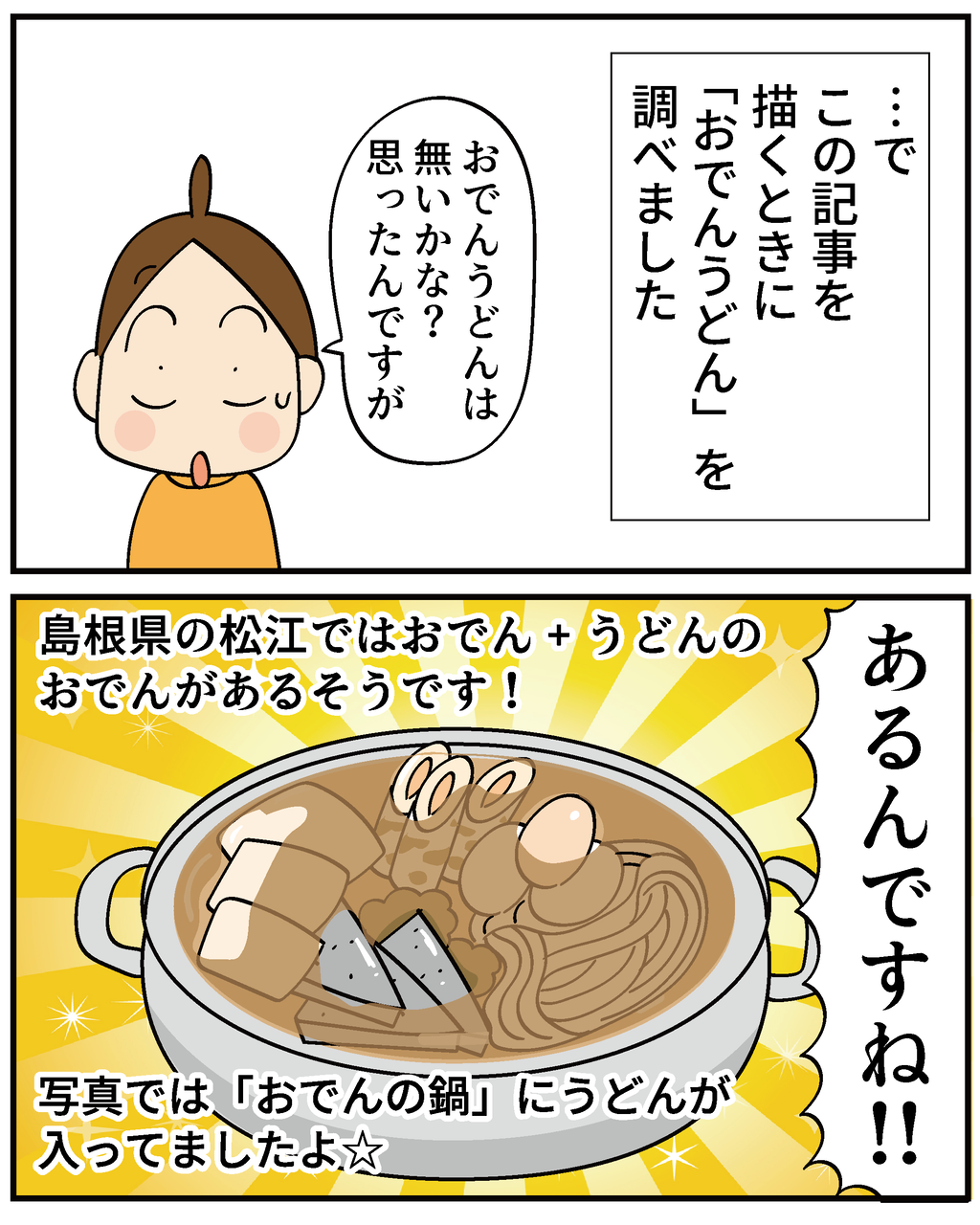 おでんうどん(松江ではおどんと呼ぶそうです)おいしいので私も好きです~