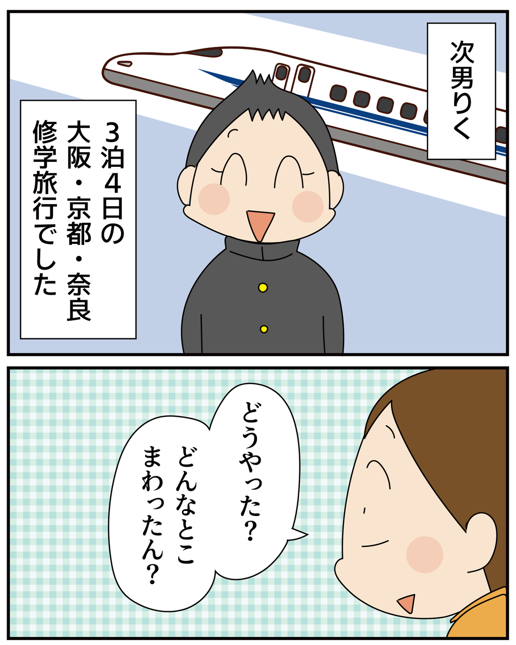 2025年11月10日 次男修学旅行!①後ろからどつかれた ↓続きはこちら↓ 今まで子どもたちが買ってきてくれたおみやげの中で最上級に量が多かったです!関西弁の人がいっぱいいたそうです~٩(ˊᗜˋ*)و↓長女ももの中学修学旅行↓ ↓長男たくの高校修学旅行↓ ↓修学旅行の謎↓ ☆最新記事をLINEでお知らせします!☆↓友だち追加はこちらから!↓※エラーが出る場合はお手数ですが「LINEホーム画面」→「上部検索バー」→「けえこで検索」をお願いします!★ブログランキング★↓クリックして応援してね!↓ Tシャツ作りました 「17歳」カテゴリの最新記事 < 前の記事次の記事 > コメント コメント一覧 (17) 1. カナ 2025年11月10日 06:42 おはようございます😊 八ツ橋作る体験? やってみたいなぁ😄 八ツ橋自体はちょっと苦手なんですが作ってみたい! 早く見せたいからとお土産持って帰ってくるなんて一生懸命選んだから1秒でも早く皆に!みたいな気持ちかなぁ? 明日も楽しみにしています 0 howawand がしました 9. カナさんへ 2025年11月10日 15:10 >>1 八つ橋体験は初めて聞きました☆ すっごく楽しそうですよねぇ~!私も実は八つ橋が苦手だったんです。 ももが八つ橋が大好きで、一緒に食べてるうちにおいしいかも?と思うようになり、今はとっても好きになりました~固い方が好きです٩(ˊᗜˋ*)و お土産を帰ってすぐに渡したかったみたいです!明日もよろしくお願いします~! 0 howawand がしました 2. どじゃ子 2025年11月10日 06:56 おはようございます😁 どつかれた うわぁりく君が関西弁を使ってる 嬉しいな 関西への修学旅行 楽しんでくれたんやねぇ 昨日は一日中雨 今日は晴れの予報 午後から 私用の渋柿を20個みしります(関西弁) 出来たら物置と化してる裏間の片付けもしたいな 秋は片付けがしやすい時期で助かります 0 howawand がしました 10. どじゃ子さんへ 2025年11月10日 15:11 >>2 私もりくが関西弁を使ってるので驚きました☆ 「鹿にどつかれた」とLINEがきましたww みしります→むしりますですか??知らなかったですー! 片づけしないといけないところが思いつくだけでも3か所くらい… 私も頑張ってやりますー! 0 howawand がしました 3. 夢華 2025年11月10日 07:01 鹿にどつかれた(笑) 凄いパワーワードですね 関西には行ったことないので行ってみたいです(*^-^*) 0 howawand がしました 11. 夢華さんへ 2025年11月10日 15:12 >>3 私も久しく関西に行ってないです。奈良は遠足で行ったっきりですし… 一度ゆっくり行ってみたいなと思いました٩(ˊᗜˋ*)و 0 howawand がしました 4. ひろみ 2025年11月10日 07:06 鹿さんも狙ってたんでしょうね(笑)「はよ開けぃ」って。 お土産もたくさんあったんですね(☆▽☆) 体調悪くなり疲れが…ドーンと出るしやたら…眠い!!明日は病院だから今日一日我慢ですね(笑)今日は午後から整骨院です。今週は病院で1週間終わります。(;´д`)トホホ… けえこさんも気をつけてください(ㆁωㆁ) 0 howawand がしました 12. ひろみさんへ 2025年11月10日 15:13 >>4 鹿さんせんべい早く食べたかったんでしょうね♪(♡´ㅂ`♡) 今日は整骨院で明日も病院ですね!気を付けて行ってきてくださいー!! 治療weekですね٩(ˊᗜˋ*)و 0 howawand がしました 5. もも 2025年11月10日 07:06 わぁ〜✨秋の京都素敵ですね🍁お土産もたくさんでワクワク♡ 少し前にけえこさんがお話しされてから気になっていた落花生を私も購入して蒸篭で蒸してみました🥜 長芋のようなサクサクホクホクで甘味もあってとっても美味しいですね!!ピーナッツの状態でも美味しいですけど、また違った美味しさがあって新たな出会いでした☺️ 0 howawand がしました 13. ももさんへ 2025年11月10日 15:14 >>5 落花生食べてくださったんですかー!うれしい!しかも蒸篭♩おしゃれです~٩(ˊᗜˋ*)و ホクホクでおいしいですよねぇ~おいもみたいだなと思いました!! 蒸篭蒸し私もやってみたいです~☆ 0 howawand がしました 6. かー 2025年11月10日 07:26 どついてきたのは鹿でしたか。 よっぽど食べたかったのでしょう〜。(笑) 八ツ橋、作ってみたいですね~。 0 howawand がしました 14. かーさんへ 2025年11月10日 15:15 >>6 鹿がうしろからどついてきたそうですww 早く食べたかったんですね☆ 八つ橋作り体験楽しそうですよねぇー♪皮から作ったそうですよ!! 0 howawand がしました 7. みちこ 2025年11月10日 09:48 鹿に催促されちゃったのね😅 私も昔修学旅行で行ったんですが、エサも持ってないのにお尻噛まれました🙄 0 howawand がしました 8. めぐみ♪ 2025年11月10日 13:00 りくくん☆ようこそ関西へ~🎵 海遊館では大興奮だったんじゃないかな🤭 催促してくる鹿さんも可愛いですね♡ 私も、むかーし小学生の頃に奈良へ遠足に行った時、鹿さんのチョコボールのような💩がいっぱい転がってる所でお弁当を食べましたww どんなお土産かな~楽しみ❣️ 0 howawand がしました 15. めぐみ♪さんへ 2025年11月10日 15:16 >>8 海遊館めちゃめちゃ楽しかったみたいです!1 魚いっぱいですもんね☆ 鹿さんのチョコボールが転がってるところでお弁当ww そういうのが思い