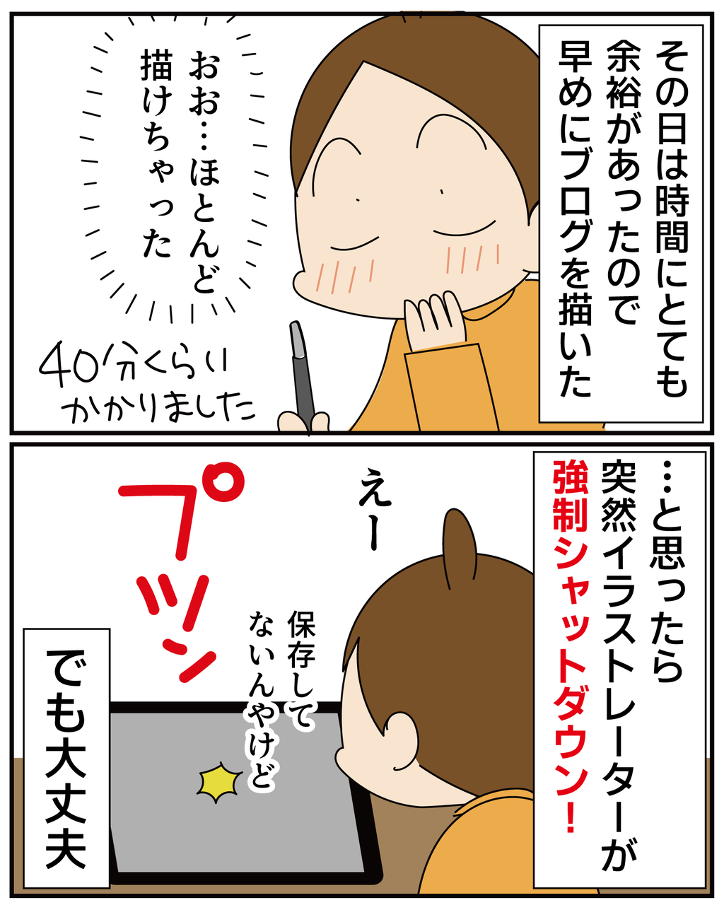 みんなの肌色とか、髪の色とか服の色とか…カラーパレットに全部保存してるんですがそれも全部消えてしまいました。。そして液晶タブレットには右手で描きながら左手で「最前面へ」とか「取り消し」とか「グループ化」とか作業しやすいようにボタンに動作を登録してるんですがそれもぜーんぶ消えました…どのボタンに何を登録したのか忘れてるので感覚で思い出しながら登録し直しました。゚(゚´Д`゚)゚。