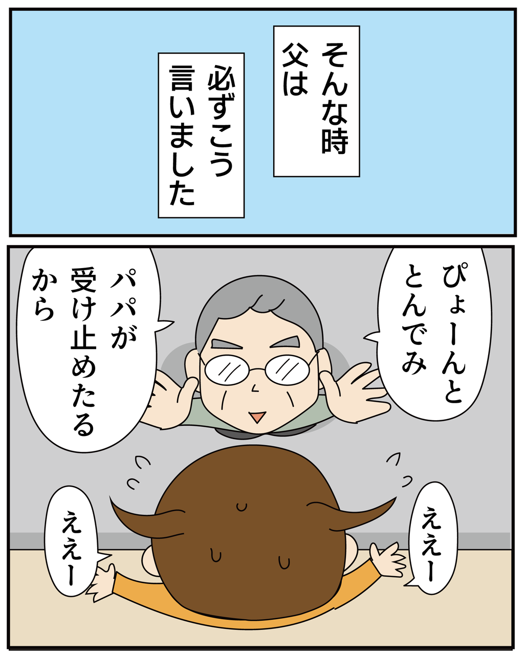 父は絶対受け止めてくれました。落とされてもびっくりするんですけどねww