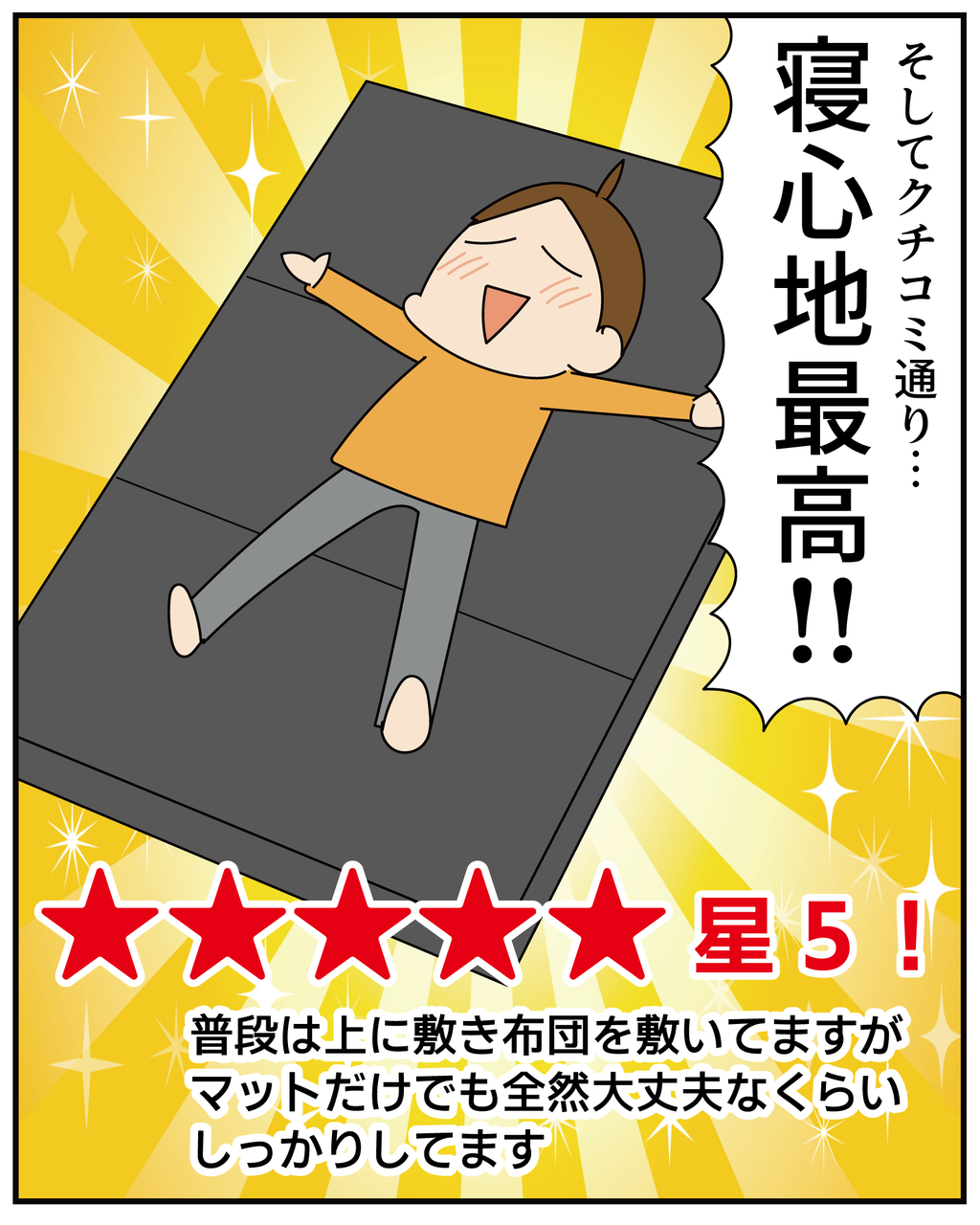 かためのマットなので全然身体がしずまず寝心地が最高でした。