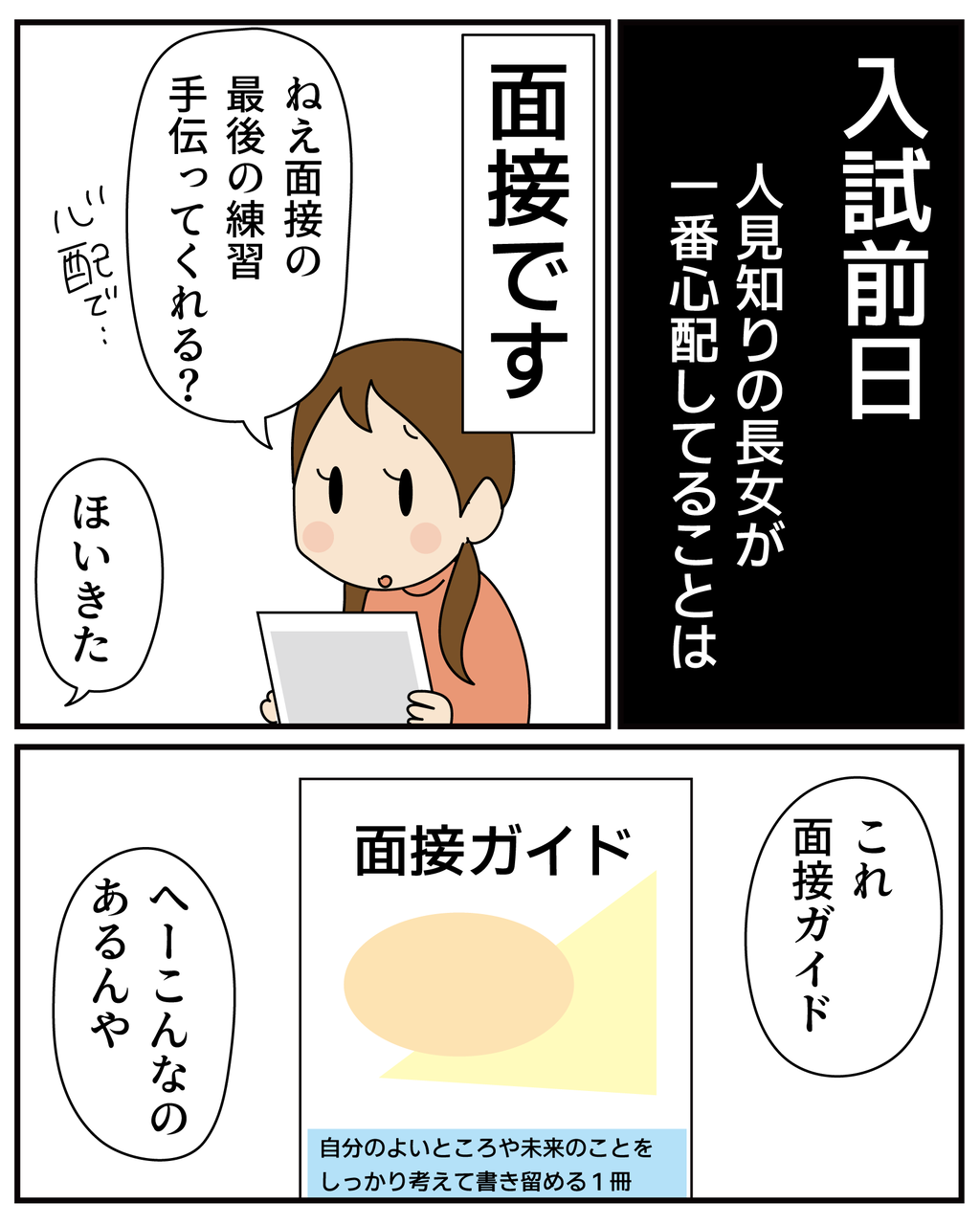 「アドバイスするなら…もう、本当にそのままで良いから!ただ、面接の時だけ、猫被ってくれる?その時だけでいい!そこ終われば後は徐々に素を出して良いから、面接の時は猫被る!よしこれでいこう!いい?嘘でもやる気見せてね!笑」と言われたので、長女には面接時だけは猫被ってもらいます…笑