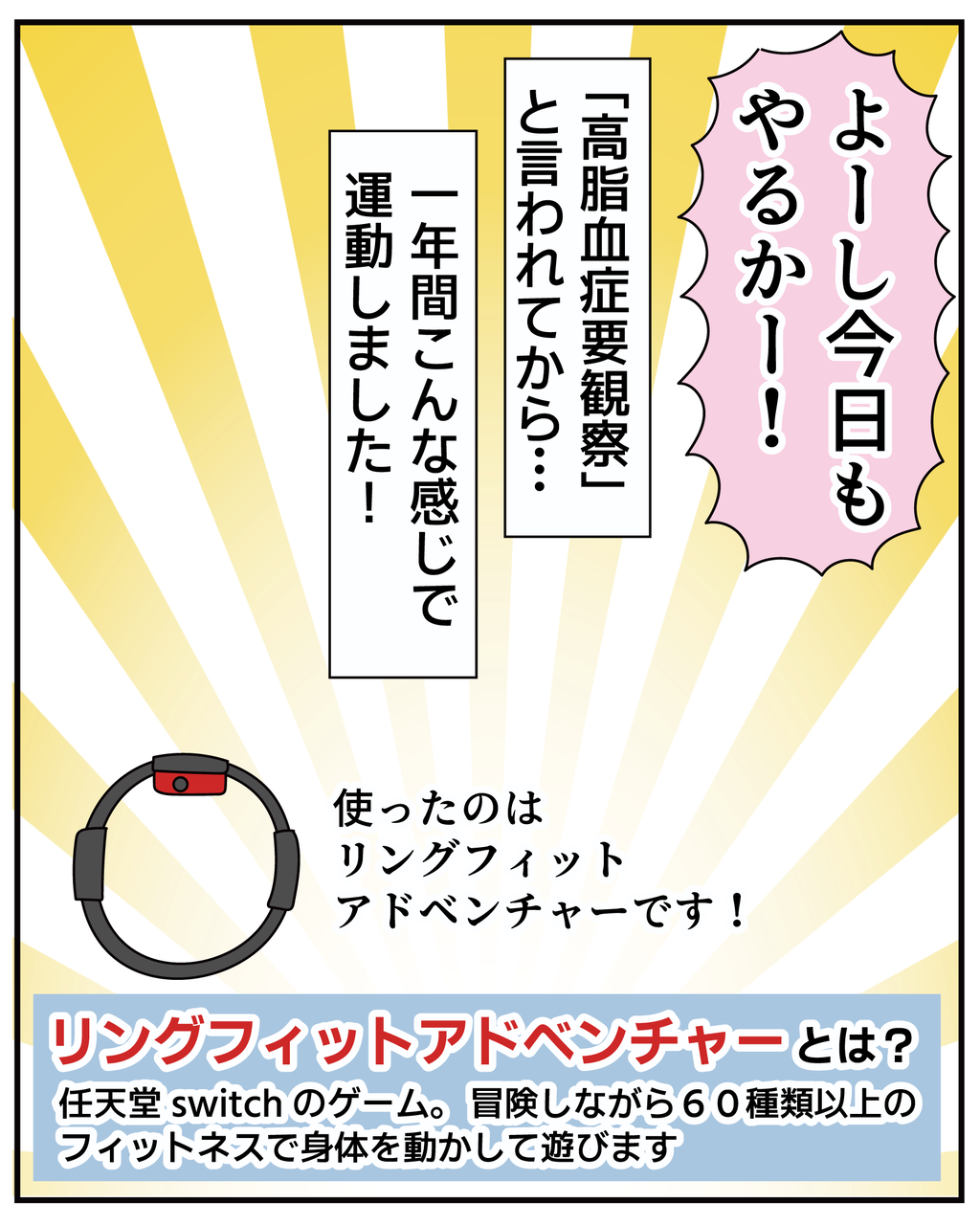 中性脂肪も239→74になりました。毎日続けるのに苦ではないので、引き続きリングフィット頑張りたいと思います~