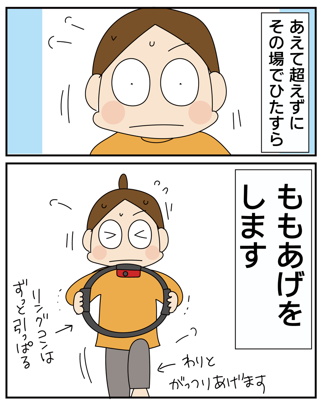 リングコンを引っ張りながらのもも上げ…キツそうですね~