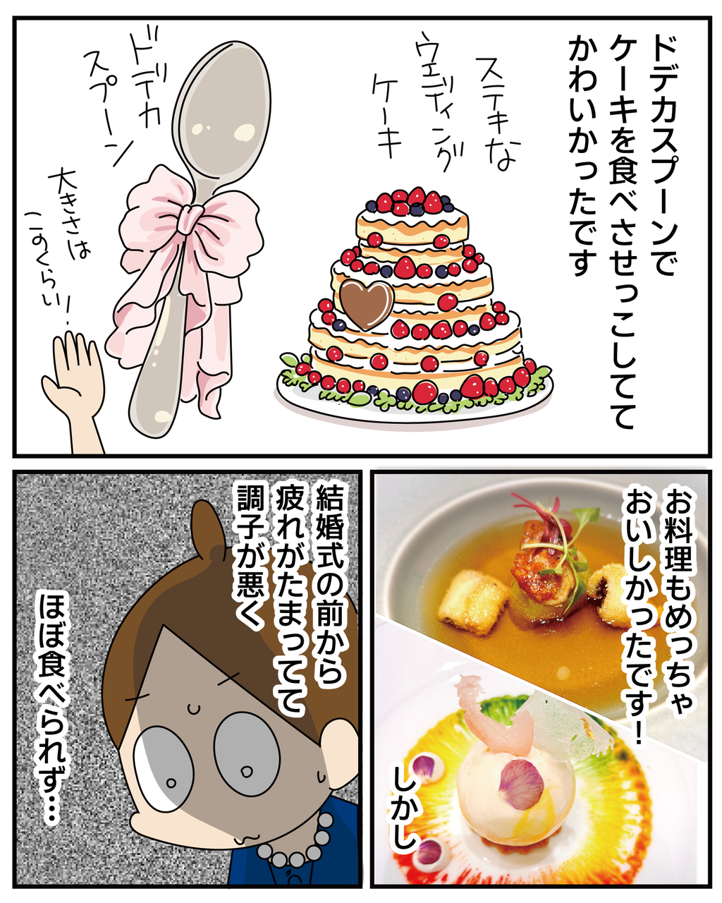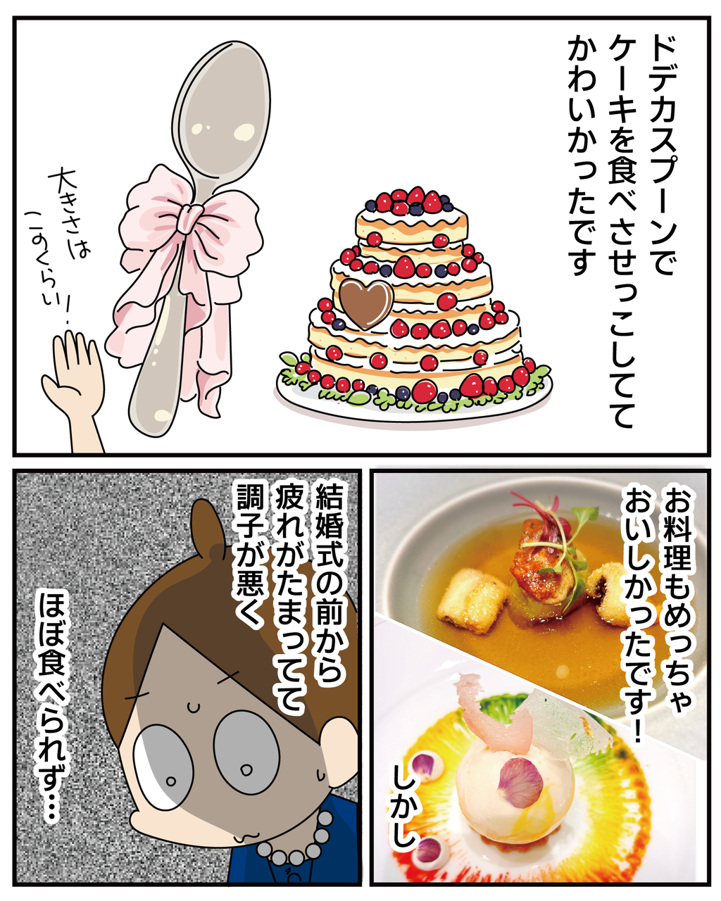 しかし、私は結婚式の2週間くらい前からずっと調子が悪くて食べられなくて…